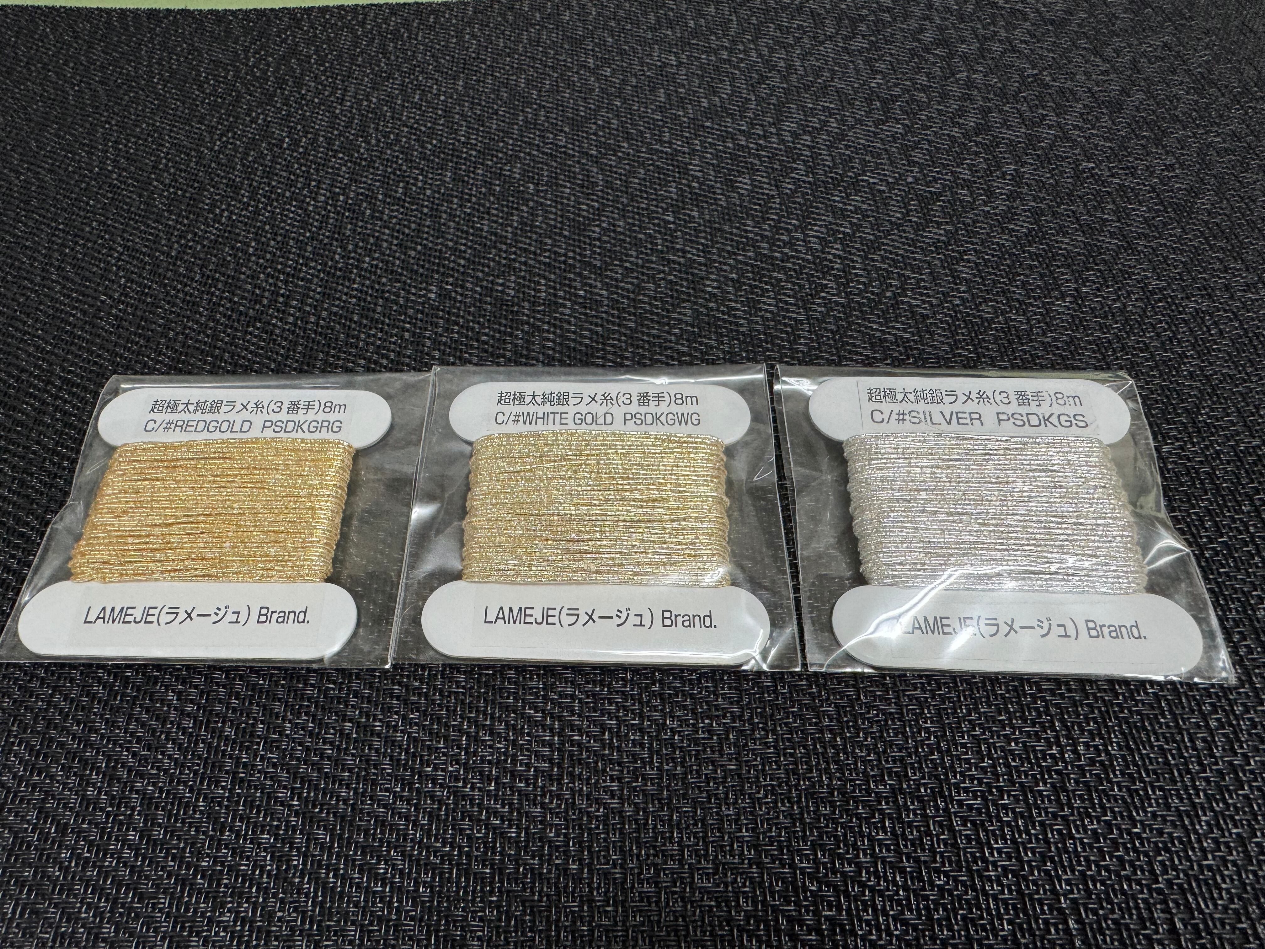 超極太純銀ラメ糸3番手8m巻き SILVER/WHITEGOLD/REDGOLD